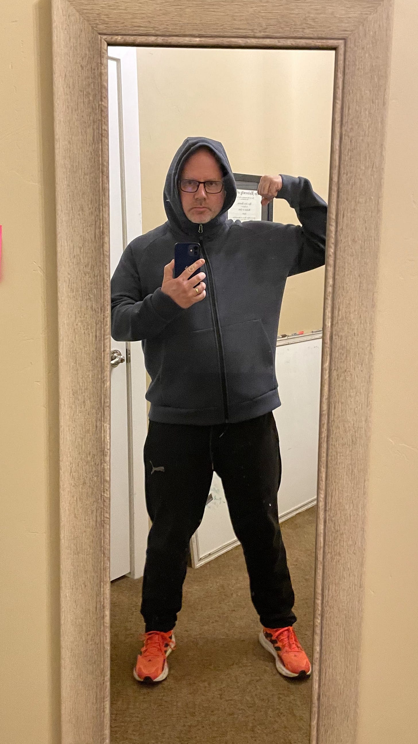 Two sets per exercise. Two minutes rest between each set. All lifts use dumbbells in both hands except for Rows, which use only one dumbbell, with the left arm and knee on the bench when doing the right side with one dumbbell in the right hand. Reverse and put the right arm and knee on the bench when doing the left side.